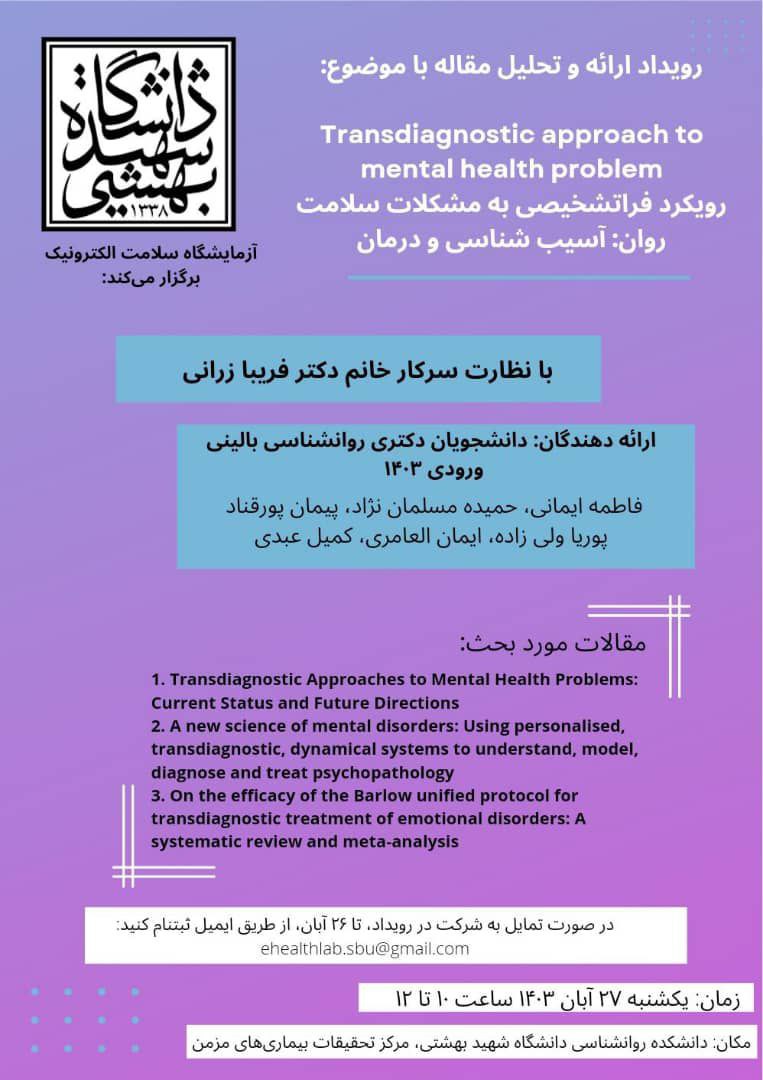 ارائه دهنده: دانشجویان دکتری روانشناسی بالینی ورودی ۱۴۰۳