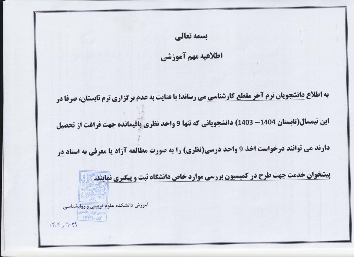 اطلاعیه مهم برای دانشجویان کارشناسی