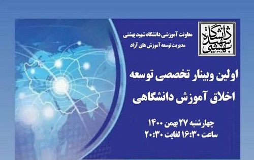 اولین وبینار تخصصی توسعه اخلاق آموزش دانشگاهی به همت معاونت آموزشی دانشگاه شهیدبهشتی، روز چهارشنبه، ۲۷ بهمن ۱۴۰۰ با سخنرانی دکتر سعداله نصیری قیداری، رئیس دانشگاه به صورت مجازی برگزار شد.