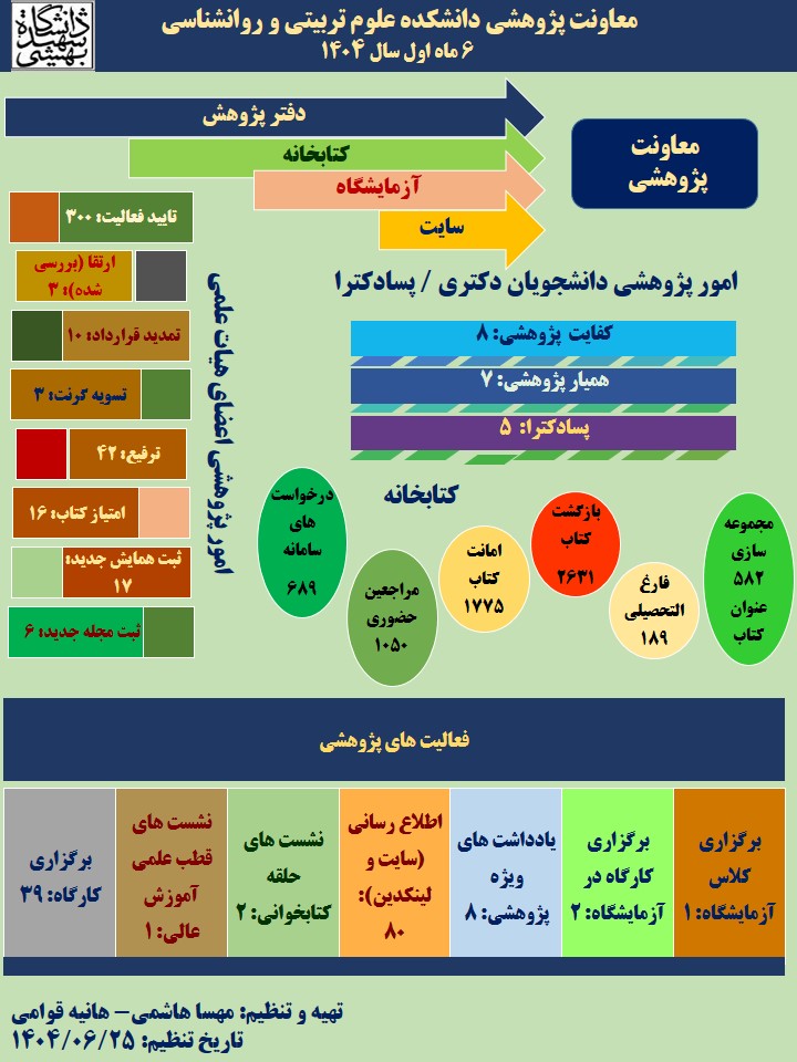 اینفوگرافی معاونت پژوهشی دانشکده در 6 ماه اول 1404