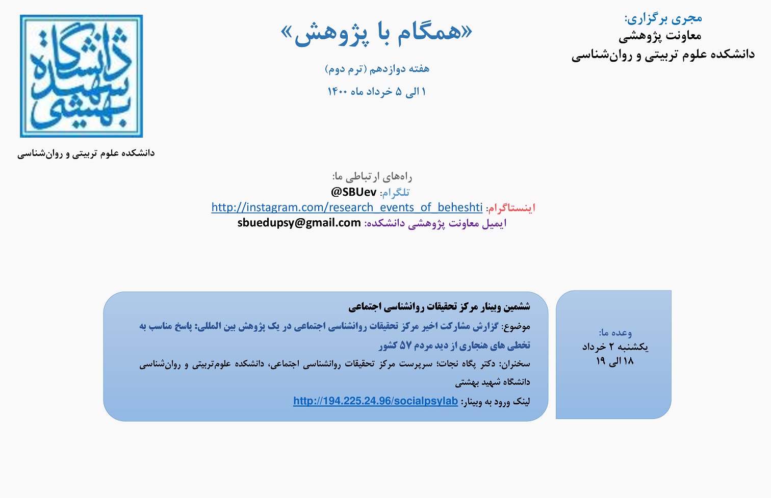 برنامه وبینارهای هفته دوازدهم (ترم دوم) از رویدادهای معاونت پژوهشی دانشکده علوم تربیتی و روانشناسی