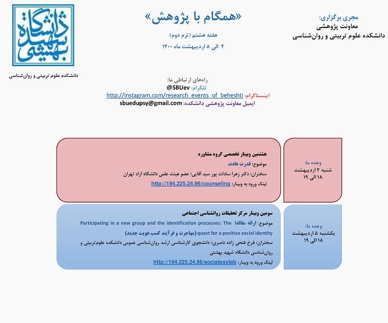 برنامه وبینارهای هفته هشتم (ترم دوم) از رویدادهای معاونت پژوهشی دانشکده علوم تربیتی و روانشناسی