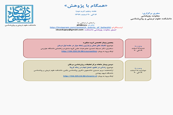 برنامه وبینارهای هفته پنجم (ترم دوم) از رویدادهای معاونت پژوهشی دانشکده علوم تربیتی و روانشناسی