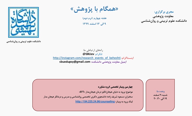 برنامه وبینارهای هفته چهارم (ترم دوم) از رویدادهای معاونت پژوهشی دانشکده علوم تربیتی و روانشناسی