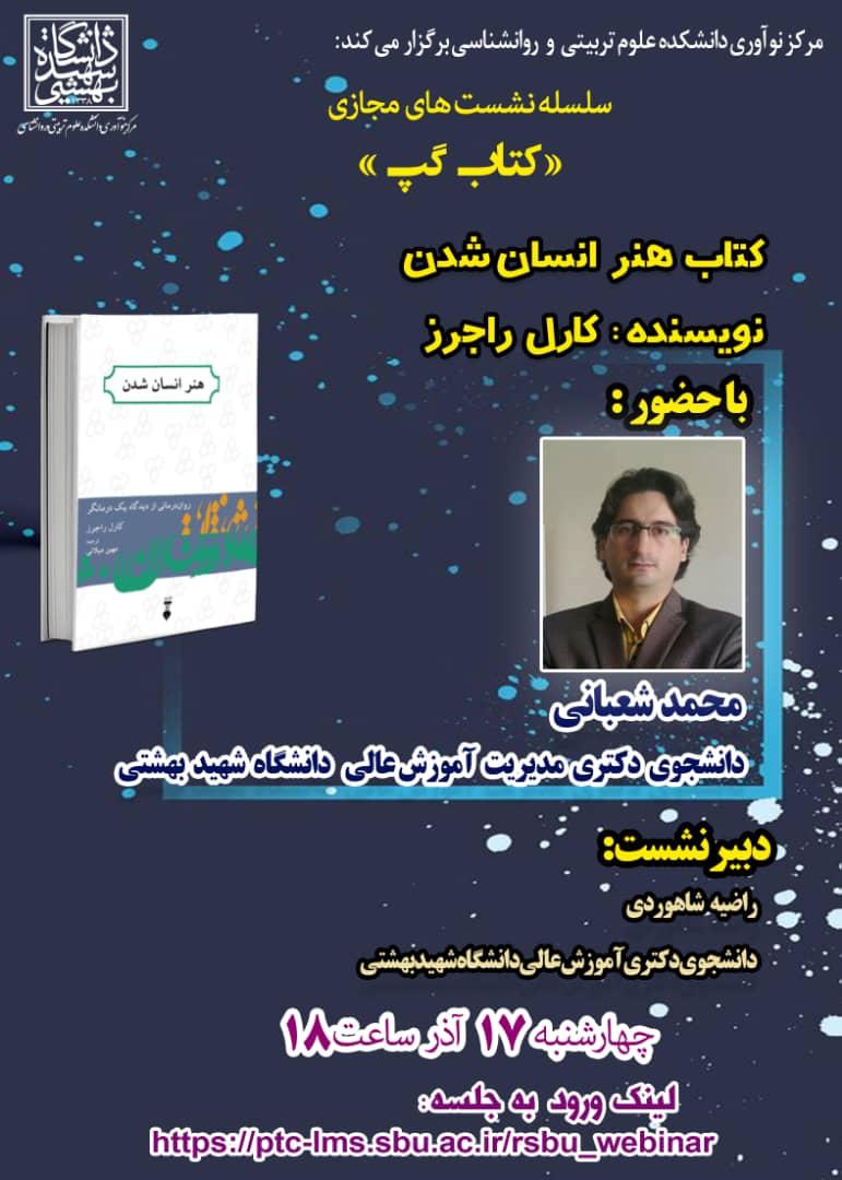 مرکز نوآوری دانشکده علوم تربیتی و روانشناسی دانشگاه شهید بهشتی برگزار میکند: 📌 سومین نشست از سلسله نشستهای مجازی «کتاب گَپ»