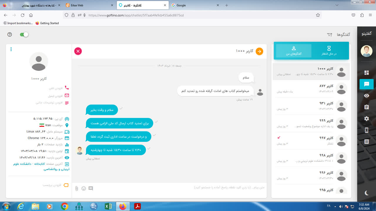 تعداد کاربران سامانه پرسش از کتابدار به عدد 1000 رسید