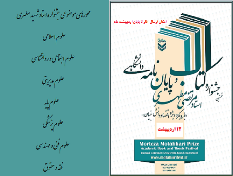 جشنواره کتاب و پایان نامه دانشگاهی استاد مرتضی مطهری برگزار می شود.