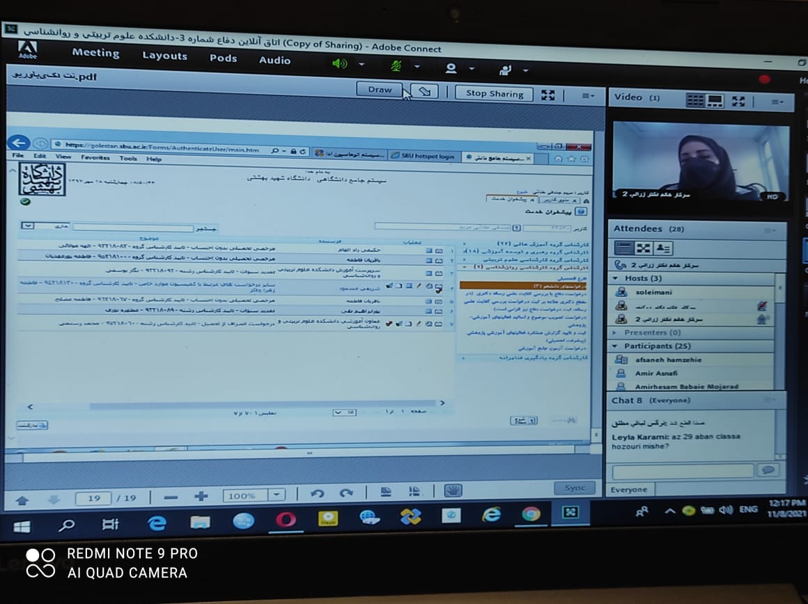 جلسه معارفه دانشجویان دوره دکتری نو ورود (۱۴۰۰) روز دوشنبه ۱۷/ ۸/ ۱۴۰۰ با آیین نامه ها، دستورالعمل های اجرایی و آشنایی با سیستم گلستان آموزشی با حضور معاونت آموزشی و تحصیلات تکمیلی دانشکده، سرپرست آموزش دانشکده, کلیه کارشناسان آموزش و گروه های علمی برگزار شد. در انتهای جلسه به کلیه پرسش های دانشجویان نیز پاسخ داده شد.