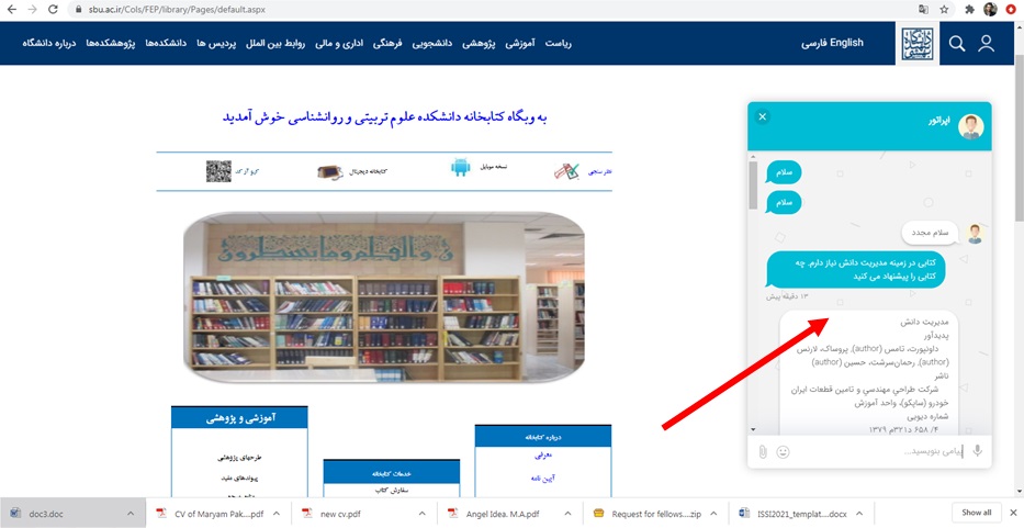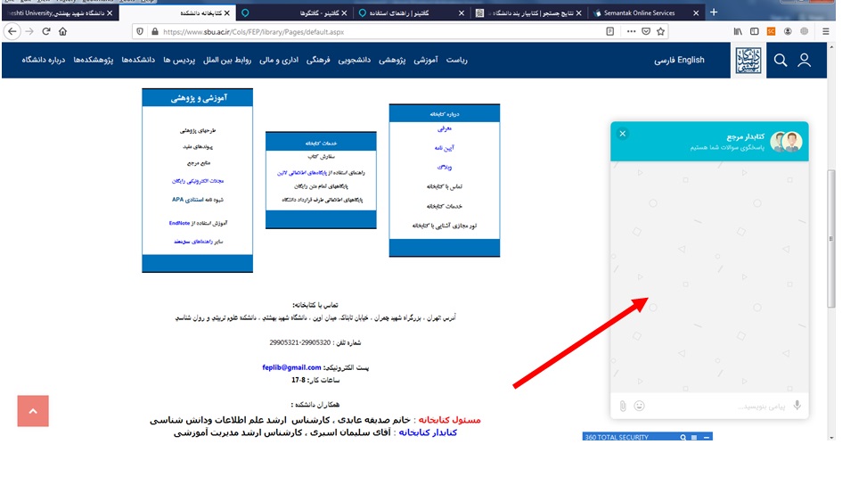 کاربران می توانند با مراجعه به آدرس زیر و بر اساس تصاویر راهنما، با کتابداران کتابخانه در ارتباط باشند و منابع اطلاعاتی مورد نیاز خود را درخواست نمایند.