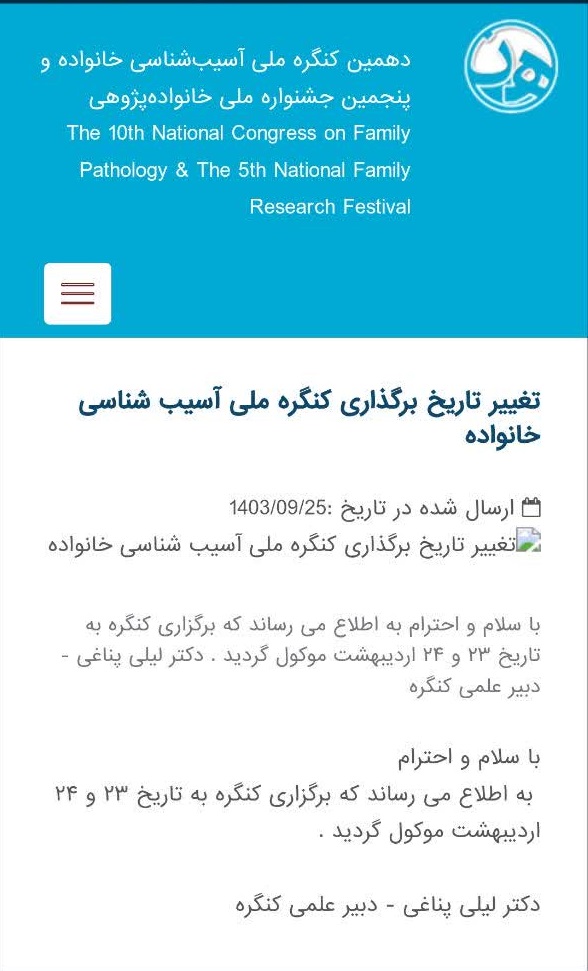 زمان نهایی برگزاری دهمین کنگره ملی آسیب شناسی خانواده و ششمین جشنواره ملی خانواده پژوهی