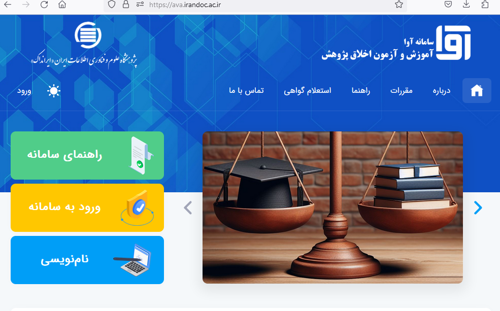سامانه آموزش و آزمون اخلاق پژوهش (آوا)، در راستای قانون پیشگیری و مقابله با تقلب در تهیه آثار علمی، میکوشد گامی را در جهت آموزش و ارزیابی اخلاق پژوهش در کشور بردارد. این سامانه با ارائه بستههای آموزشی کاربردی، کوتاه و متنمحور، دانشی پایه و مفید را از مهمترین چالشهای اخلاق پژوهش که برای اجتناب از بدرفتاریهای پژوهشی ضروری هستند، در اختیار کاربر قرار داده، و سپس از طریق آزمونی هدفمند، دانش کاربر در این زمینه را مورد ارزیابی قرار میدهد. پژوهشگرانی که مایل به انجام و انتشار هر نوع محصول پژوهشی ازجمله پایاننامه/رساله، مقاله و کتاب هستند به گذراندن آزمون دورهمحور این سامانه تشویق میشوند. هر بسته آموزشی این سامانه، متشکل از 4 بخش است: توضیحی در مورد چیستی چالش مورد نظر (مثلاً سرقت ادبی؛ رضایت آگاهانه؛ و غیره)؛ بحثی درباره جوانب اخلاقی آن چالش؛ ارائه چند مورد تاریخی برای فهم بهتر چالش و ارتباطدادن آن با واقعیتهای دانشگاهی و پژوهشی؛ و معرفی چند منبع مهم برای مطالعه بیشتر. بر اساس محتوای هر بسته، مجموعه سؤالاتی برای آزمون طراحی شده، و درکل خزانهای از سؤالات متنوع آماده شده است. سامانه در هر آزمون به شکل تصادفی 20 پرسش را از تمام بستههای آموزشی به هر کاربر اختصاص میدهد. افرادی که با اخلاق پژوهش آشنا هستند و صرفاً مایل به دریافت گواهی اخلاق پژوهشاند میتوانند بدون رجوع به بخش آموزش به پرسشهای آزمون طراحیشده پاسخ دهند. در طراحی بستهها و خزانه سؤالات از منابع متنوعی بهره برده شده است. بستهها و سؤالات پس از آمادهسازی اولیه، مورد بررسی گروهی از متخصصان حوزه اخلاق پژوهش قرار گرفتهاند و درنهایت در شکل کنونی ارائه شدند. بااینحال باتوجه به پویابودن حوزه اخلاق پژوهش، بستهها و سؤالات در بازههای زمانی مشخصی بهروزرسانی خواهند شد. در طراحی تصاویر تزئینی بستههای آموزشی، از تصویرساز بینگ مایکروسافت (image creator from Microsoft bing) استفاده شده است؛ به این شکل که با ارائه توصیفهایی از این تصویرساز خواسته شده تا تصویر یا تصاویری را مطابق با توصیف ارائهشده بسازد، سپس برخی تصاویر ساختهشده مورد تعدیل و تغییر بیشتر قرار گرفتهاند. نشانی سامانه آوا به شرح زیر است: https://ava.irandoc.ac.ir/