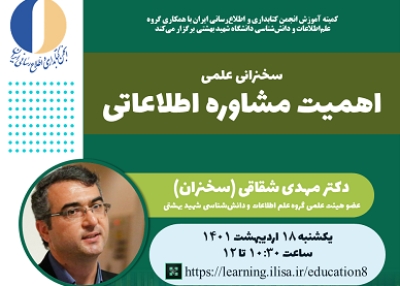 سخنرانی علمی اهمیت مشاوره اطلاعاتی برگزار می شود