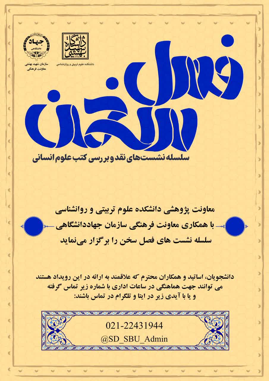 معاونت پژوهشی دانشکده علوم تربیتی و روانشناسی دانشگاه شهید بهشتی با همکاری معاونت فرهنگی سازمان جهاد دانشگاهی شهید بهشتی برگزار میکند: