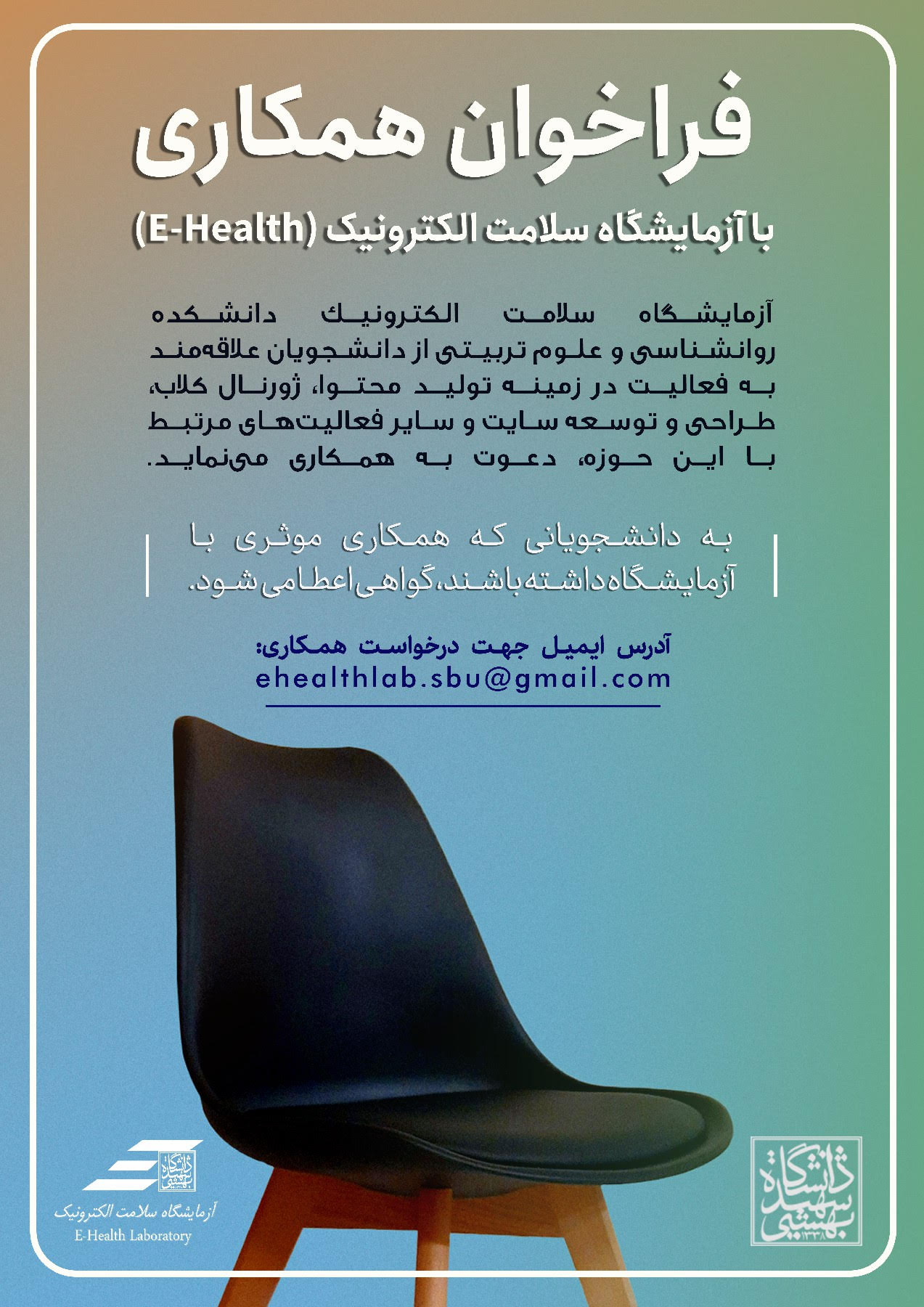 آزمایشگاه سلامت الکترونیک دانشکده ی روانشناسی و علوم تربیتی از دانشجویان علاقمند به فعالیت در زمینه ی تولید محتوا، ژورنال کلاب، طراحی و توسعه سایت و سایر فعالیت های مرتبط با این حوزه، دعوت به همکاری می نماید.