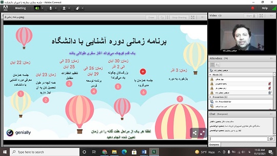 شنبه 22 آبان 1400آیین معارفه دانشجویان نو ورود مقطع کارشناسی ارشد دانشکده علوم تربیتی و روانشناسی با اعضای شورای دانشکده به صورت مجازی برگزار شد.در این برنامه اعضای هیئت رئیسه دانشکده، دکتر مظاهری رئیس دانشکده، دکتر زرانی و دکتر دهقانی، معاونان آموزشی و پژوهشی دانشکده، مدیران گروههای روانشناسی دکتر حیدری، علوم تربیتی دکتر ابوالقاسمی، مشاوره دکتر پورشهریار و علم اطلاعات و دانش شناسی دکتر اصنافی، مدیر مجموعه آزمایشگاههای دانشکده دکتر صادقی،مدیر مرکز نوآوری دانشکده دکتر اعلامی، و مدیر آزمایشگاه یادگیری فناورانه دانشکده دکتر رضایی زاده به سخنرانی پرداختند و ضمن خیرمقدم به دانشجویان، موارد مهم آموزشی، فرهنگی و پژوهشی را به دانشجویان یادآور شدند.