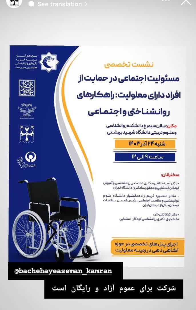 نشست مسئولیت اجتماعی در حمایت از افراد داری معلولیت:راهکارهای روانشناختی و اجتماعی
