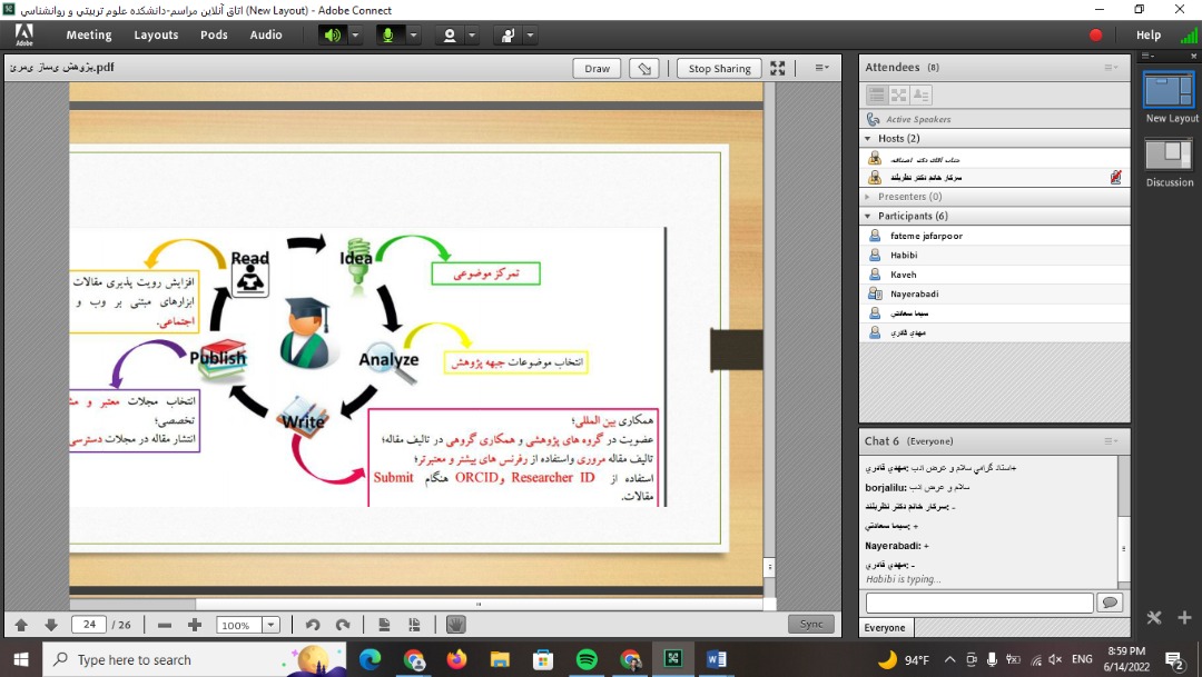 سه شنبه 24 خرداد 1401 وبینار مرئی سازی پژوهش توسط معاونت پژوهشی دانشکده علوم تربیتی و روانشناسی دانشگاه شهید بهشتی برگزار شد. در این وبینار، در خصوص اهمیت دریافت استناد بالا در مقالات، و نیز شیوه های مرئی شدن آثار پژوهشی مواردی مطرح شد. فیلم این وبینار به زودی در اختیار پژوهشگران قرار می گیرد.