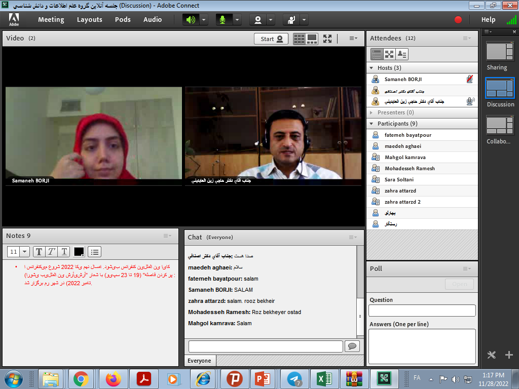 دوشنبه هفتم آذر 1401 وبینار گزارش سفر ایلکا 2022 برگزار شد. در این وبینار دکتر محسن حاجی زین العابدینی استادیار گروه علم اطلاعات و دانش شناسی دانشگاه شهید بهشتی و سمانه برجی دانش آموخته کارشناسی ارشد این گروه، در خصوص تجربیات و یافته های خود در زمینه حضور در کنفرانس سالانه ایکا که با محوریت آرشیو برگزار شده بود، مطرح کردند.