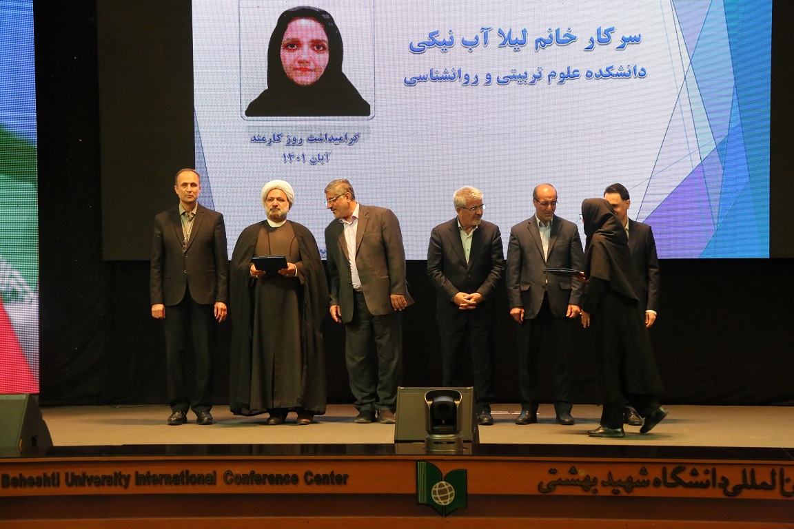 آیین تقدیر از کارمندان دانشگاه شهید بهشتی روز چهارشنبه چهارم آبان ماه 1401 در مرکز همایشهای دانشگاه برگزار شد. این آیین، با حضور دکتر نصیری قیداری (رییس دانشگاه شهید بهشتی)، دکتر ذوالفقاری (معاون پشتیبانی، مالی و مدیریت منابع)، دکتر رسولی (مشاور رئیس و مدیر حوزه ریاست و روابط عمومی)، دکتر ابطحی (معاون پژوهشی و فناوری)، دکتر جعفری (مدیر منابع انسانی و پشتیبانی) و جمعی از مدیران دانشگاه با حضور کارمندان برگزار شد. در پایان این مراسم لوح تقدیر و جوایزی به کارکنان شایسته اهدا گردید. از دانشکده علوم تربیتی و روانشناسی، لیلا آبنیکی، کارشناس آموزش دانشکده، به عنوان کارمند شایسته معرفی شد.