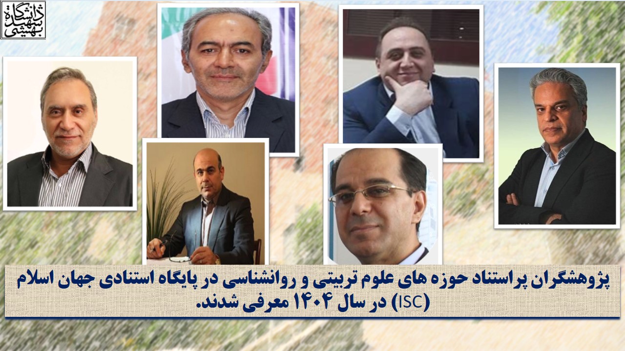 پژوهشگران پراستناد دانشکده علوم تربیتی و روانشناسی مشخص شدند. طبق گزارش پایگاه استنادی علوم جهان اسلام (آی اس سی)، پژوهشگران پر استناد دانشکده علوم تربیتی و روانشناسی دانشگاه شهید بهشتی مشخص شدند. بر این اساس از گروه علوم تربیتی، دکتر اباصلت خراسانی، دکتر محمد قهرمانی، دکتر محمود ابوالقاسمی، دکتر کورش فتحی واجارگاه، و از گروه روانشناسی دکتر محمدعلی مظاهری و دکتر امید شکری به عنوان پژوهشگران پر استناد معرفی شدند